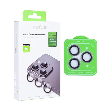 Rixus Metal Shield Camera Tempered Glass For Apple iPhone 17 Pro, 17 Pro Max Grey