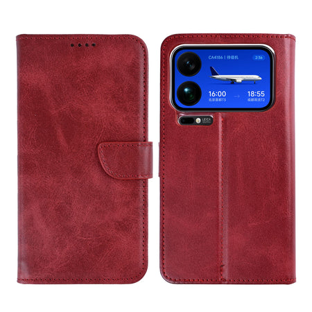 Rixus Bookcase For Xiaomi 17 Pro Max Dark Red