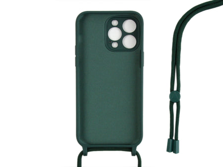 Rixus For iPhone 12 Pro TPU Necklace Cord Cover Dark Green