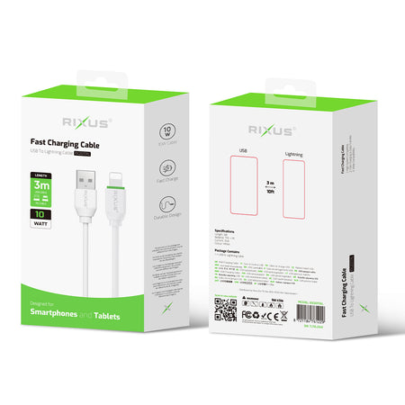 Rixus RX2017AL Data Sync And Fast Charge Cable USB To Lightning 3m