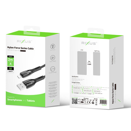 Rixus RXUC38AL Charging Cable USB-A To Lightning Nylon 200CM Black