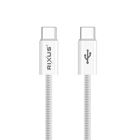 Rixus RXUC08C Fast Charging Cable USB-C To USB-C Cable Braided Nylon 180CM White