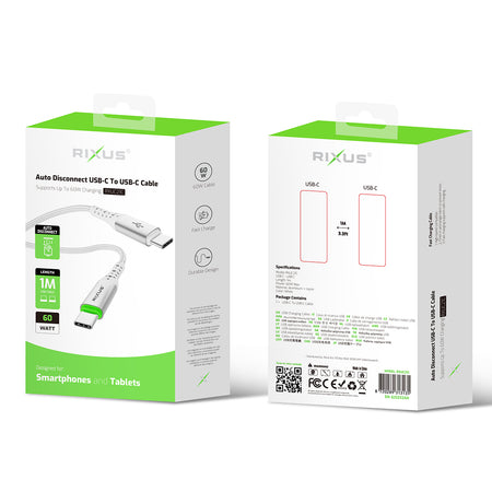 Rixus RXUC21C Auto Disconnect USB-C To USB-C Cable White