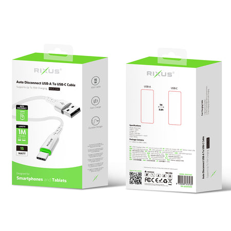 Rixus RXUC21AC Auto Disconnect USB-A To USB-C Cable White