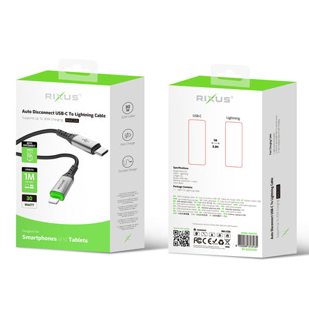 Rixus RXUC22L Auto Disconnect USB-C To Lightning Cable Black
