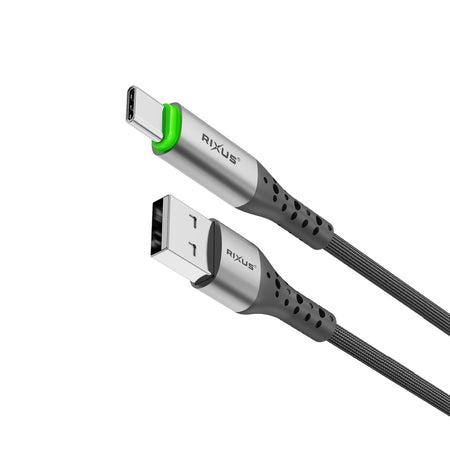 Rixus RXUC38AC Charging Cable USB-A To USB-C Braided Nylon 200CM Black