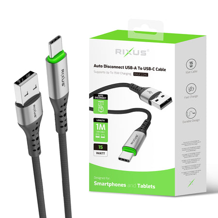 Rixus RXUC22AC Auto Disconnect USB-A To USB-C Cable Black