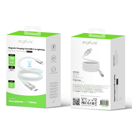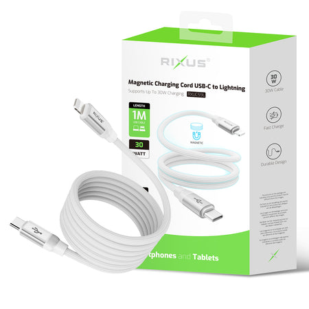 Rixus RXUC59L Magnetic Charging Cord USB-C To Lightning 100CM 30W White