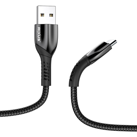 Rixus RXU71CA Nylon Braided USB-C To Lightning Cable 1.2m Black