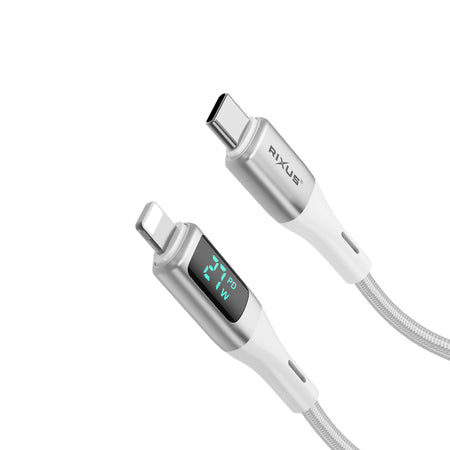 Rixus RXUC29L Braided USB-C To Lightning Cable With LED Display White