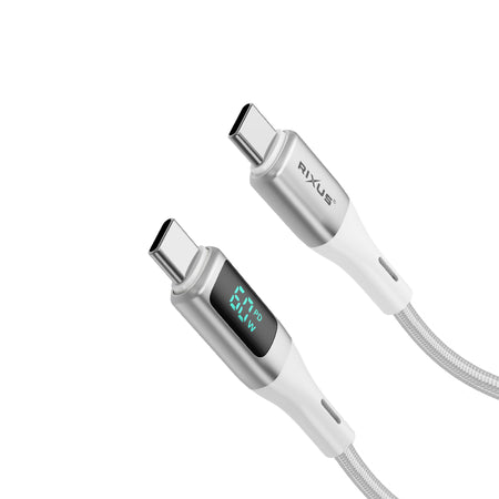 Rixus RXUC29C Braided USB-C To USB-C Cable With LED Display White