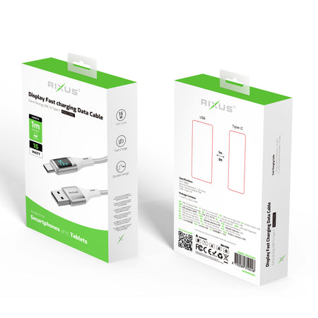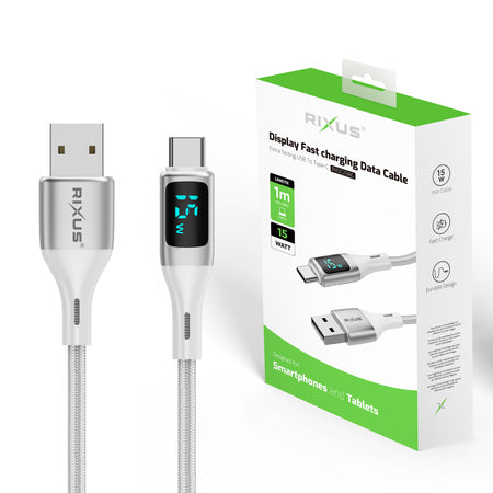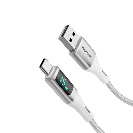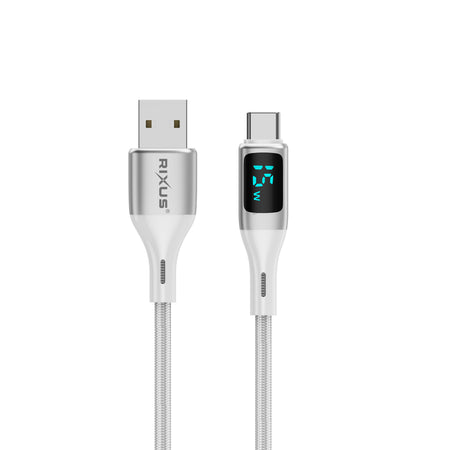 Rixus RXUC29AC Braided USB-A To USB-C Cable With LED Display White