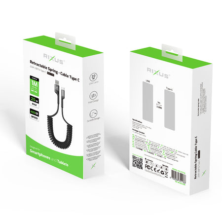 Rixus RXUC17AC Retractable Spring Cable USB-A To USB-C Black