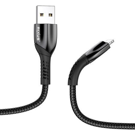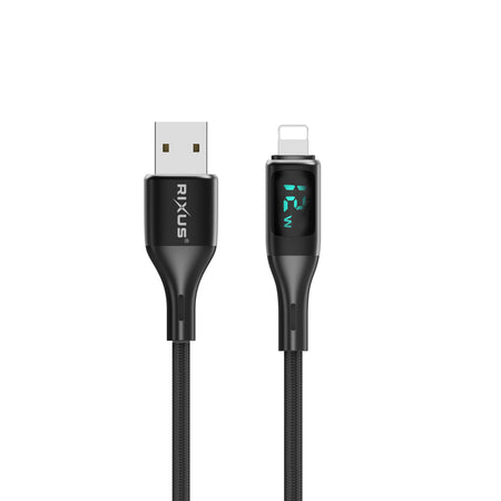 Rixus RXUC28AL Braided USB To Lightning Cable With LED Display 1m Black