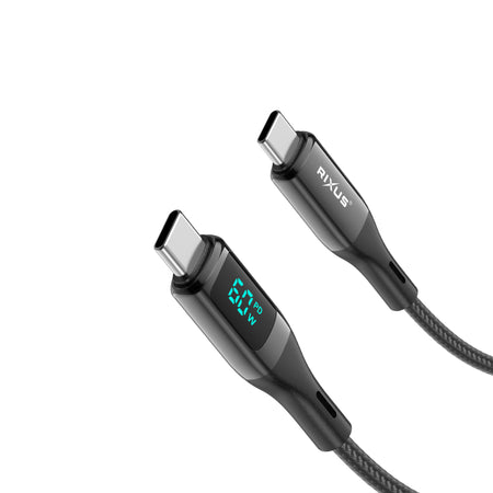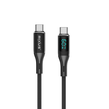 Rixus RXUC28C Braided USB-C Cable With LED Display 1m Black