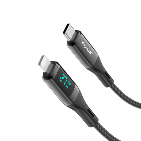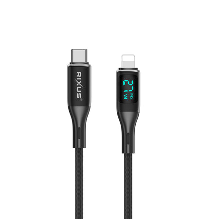 Rixus RXUC28L Braided USB-C To Lightning Cable With LED Display 1m Black