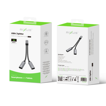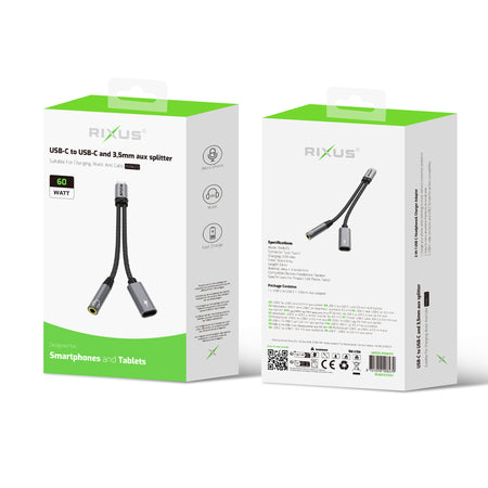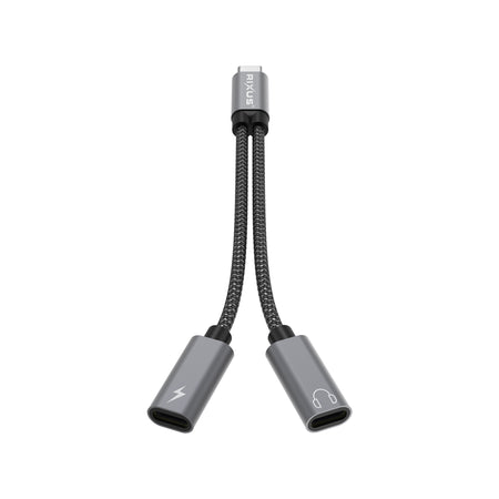 Rixus RXMU72 USB-C To USB-C And 3.5mm Aux Splitter 15cm Space Gray