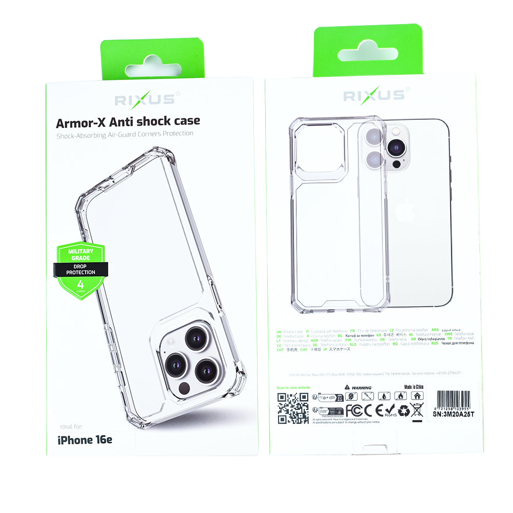 Rixus Armor-X Anti Shock Case For Apple iPhone 16e Transparent