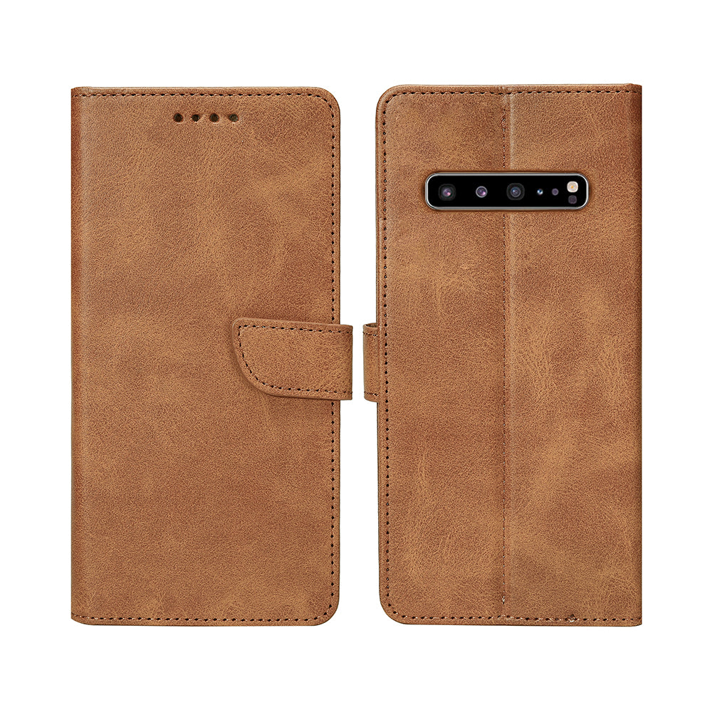 Rixus Bookcase For Samsung Galaxy S10 4G G973F Light Brown