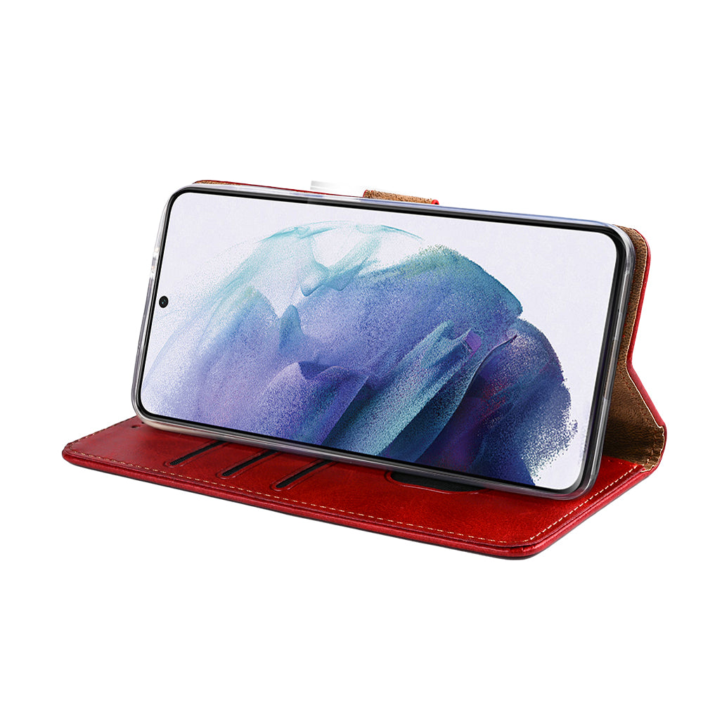 Rixus Bookcase For Samsung Galaxy S21 5G G991B Dark Red