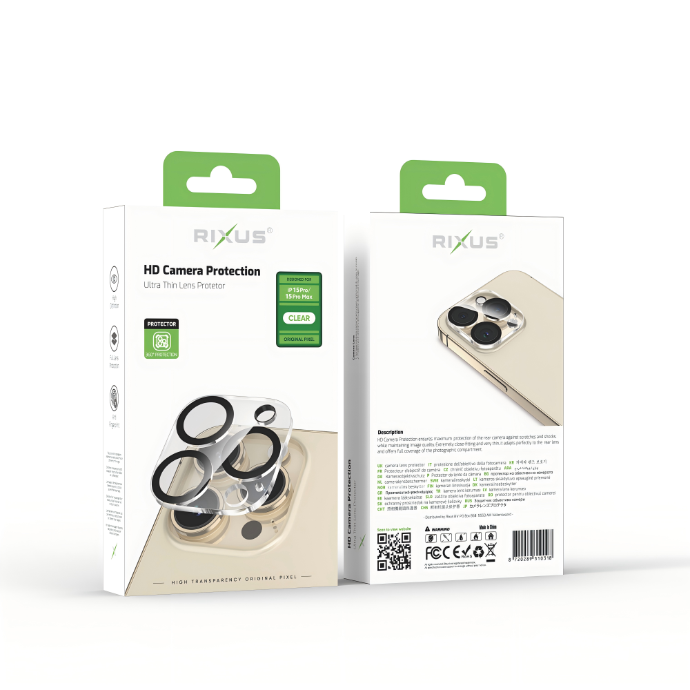 Rixus Clear HD For iPhone 15 Pro, 15 Pro Max Camera Tempered Glass