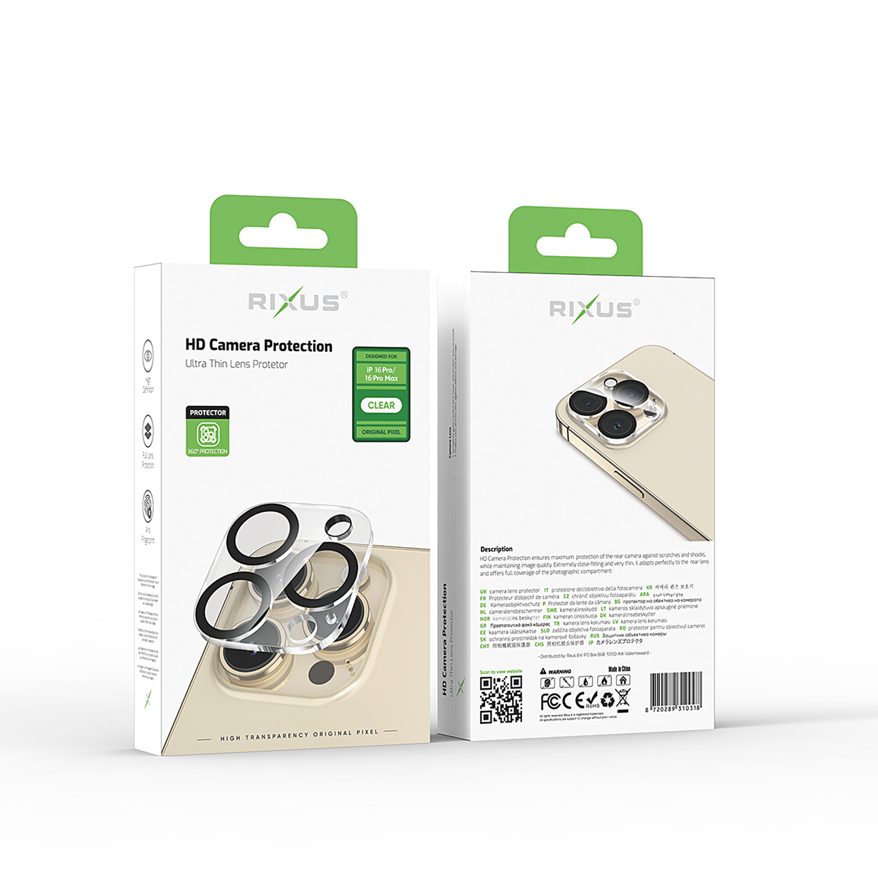 Rixus Clear HD For iPhone 16 Pro, 16 Pro Max Camera Tempered Glass