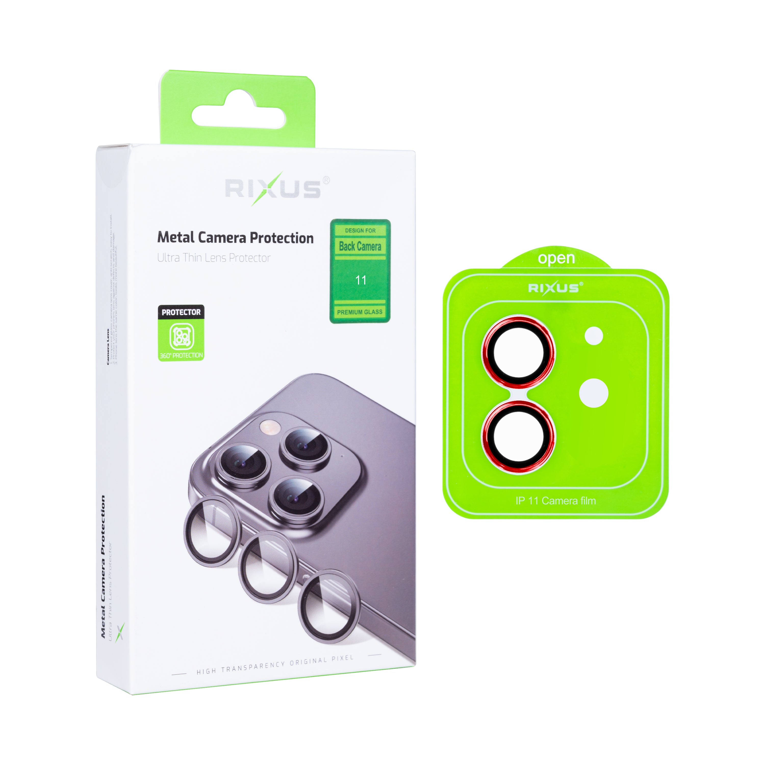 Rixus For iPhone 11 Metal Shield Camera Tempered Glass Red