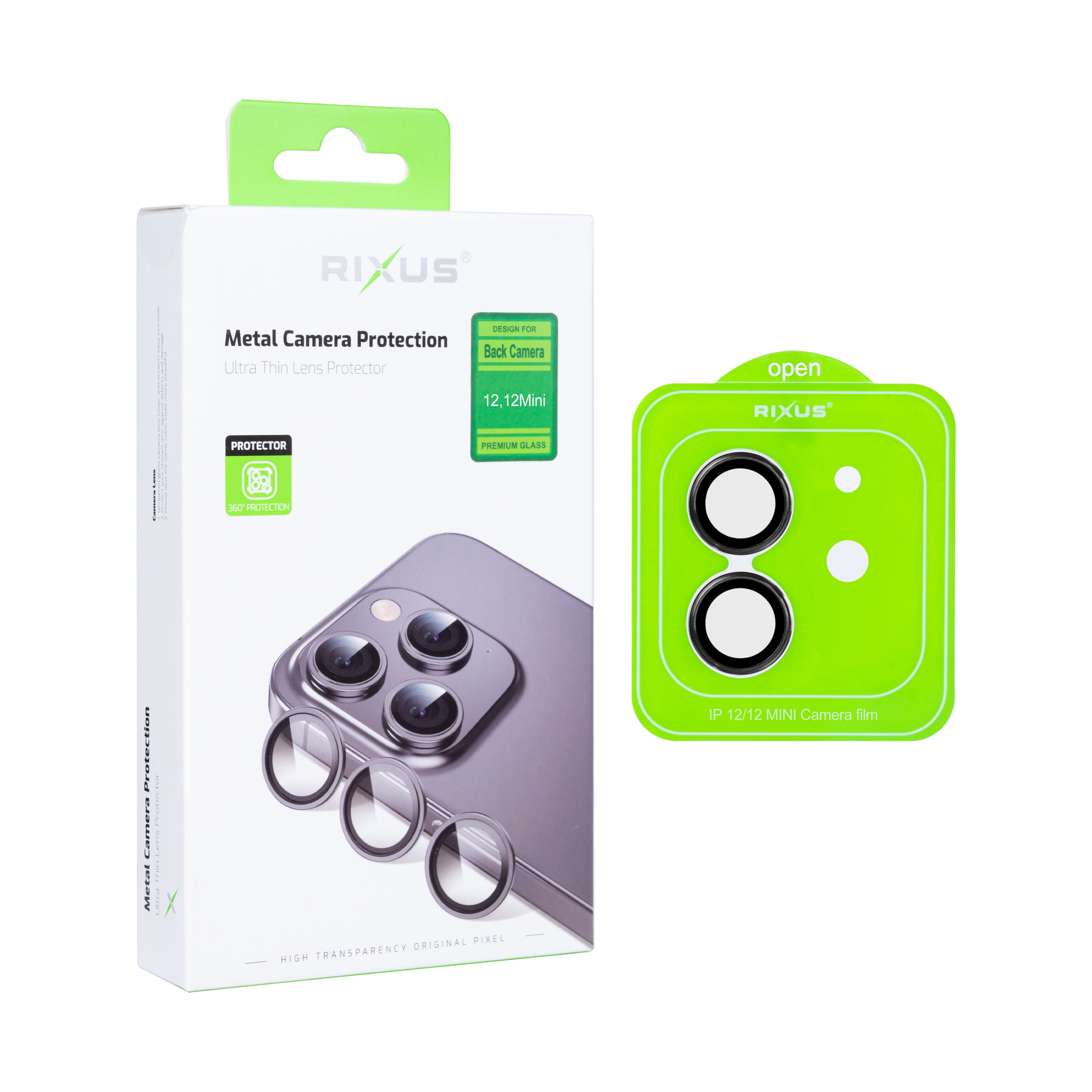 Rixus Metal Shield Camera Tempered Glass For Apple iPhone 12, 12 Mini Black