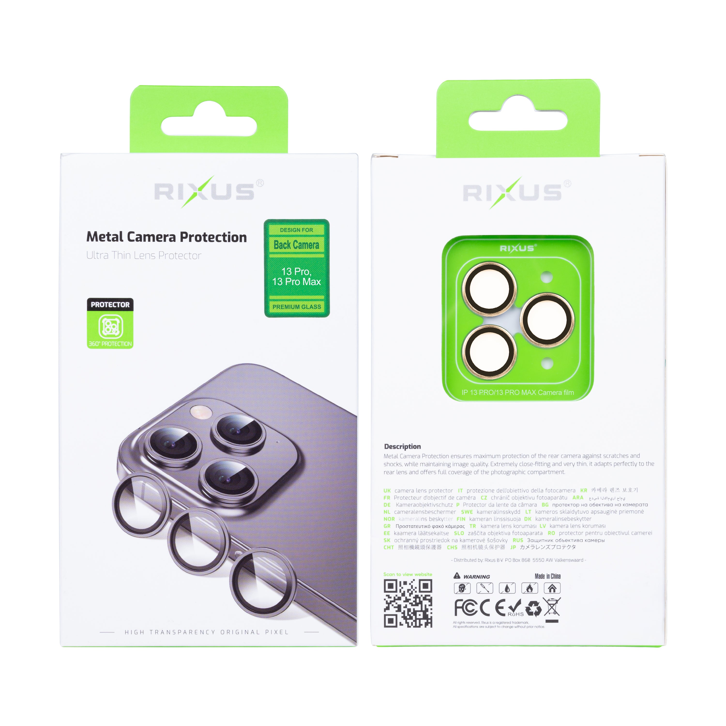 Rixus Metal Shield Camera Tempered Glass For Apple iPhone 13 Pro, 13 Pro Max Gold