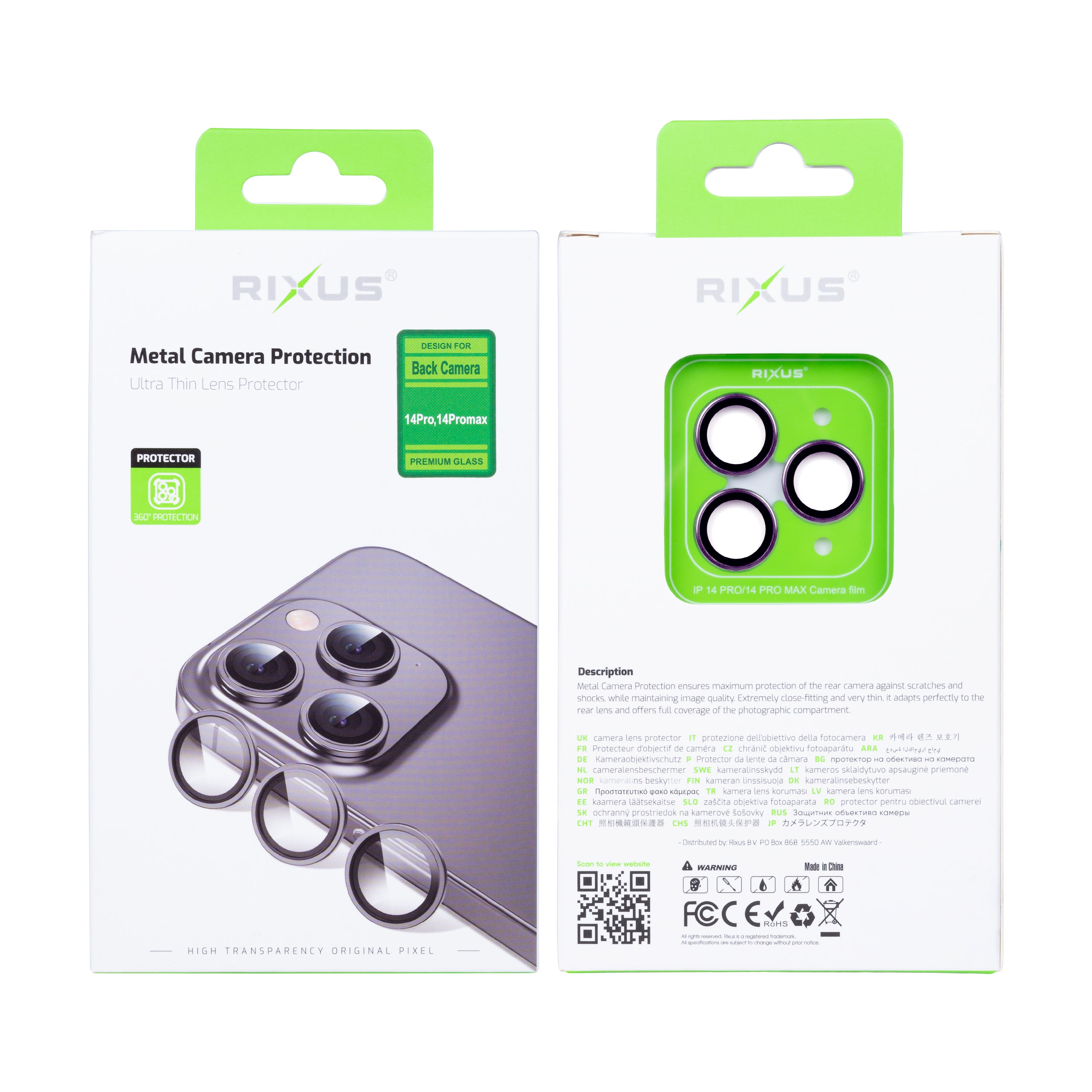 Rixus Metal Shield Camera Tempered Glass For Apple iPhone 14 Pro, 14 Pro Max Deep Purple