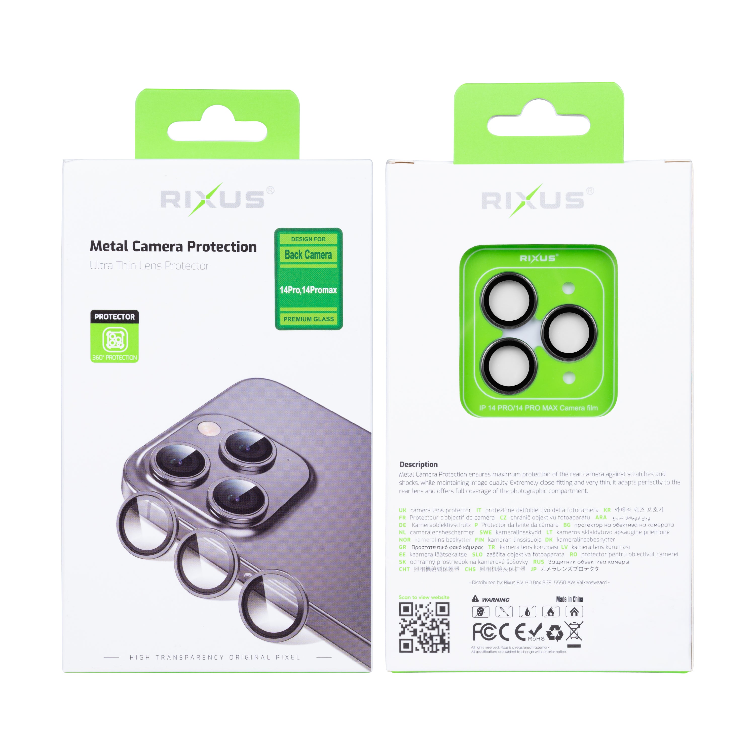 Rixus Metal Shield Camera Tempered Glass For Apple iPhone 14 Pro, 14 Pro Max Space Black