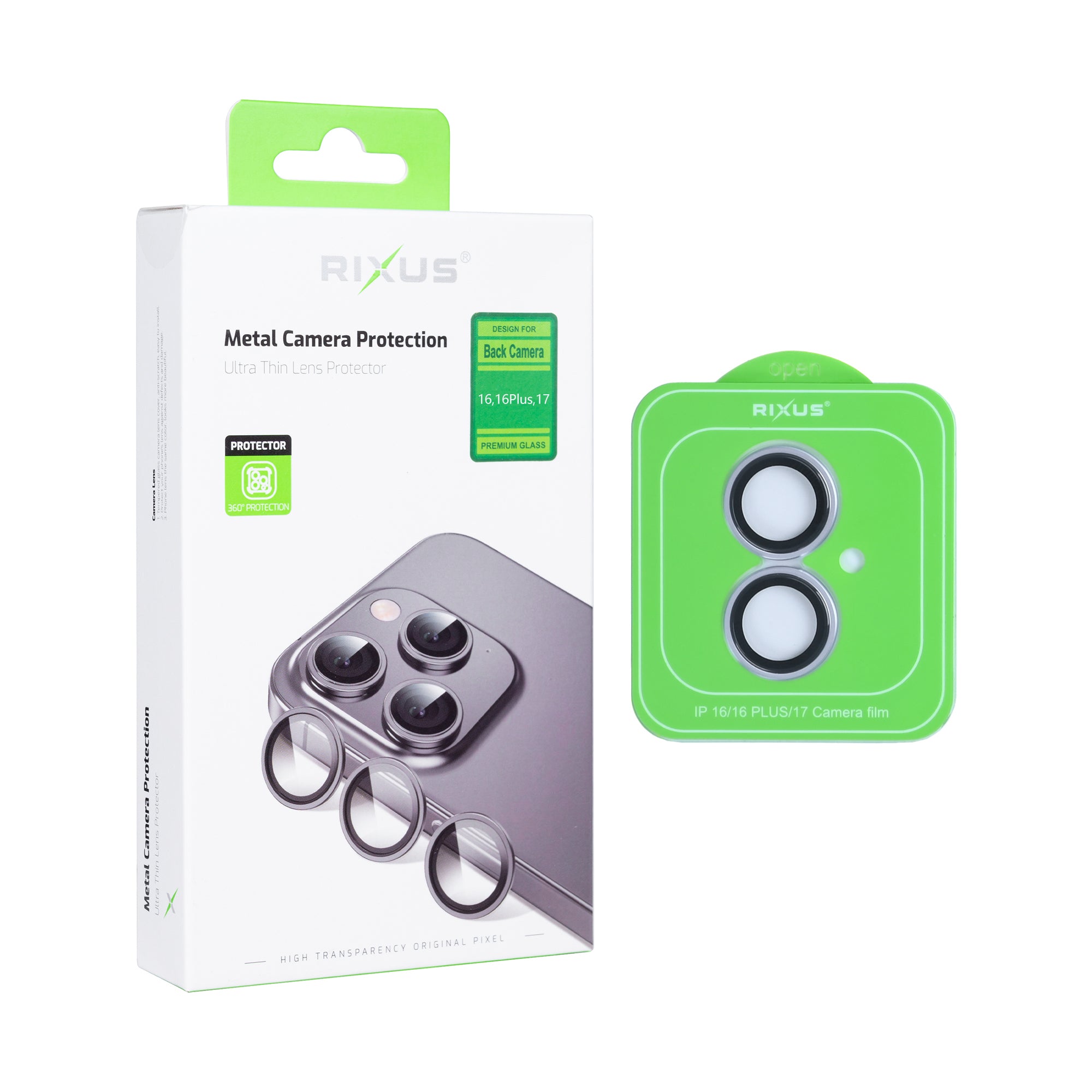 Rixus Metal Shield Camera Tempered Glass For Apple iPhone 16, 16 Plus, 17 Purple