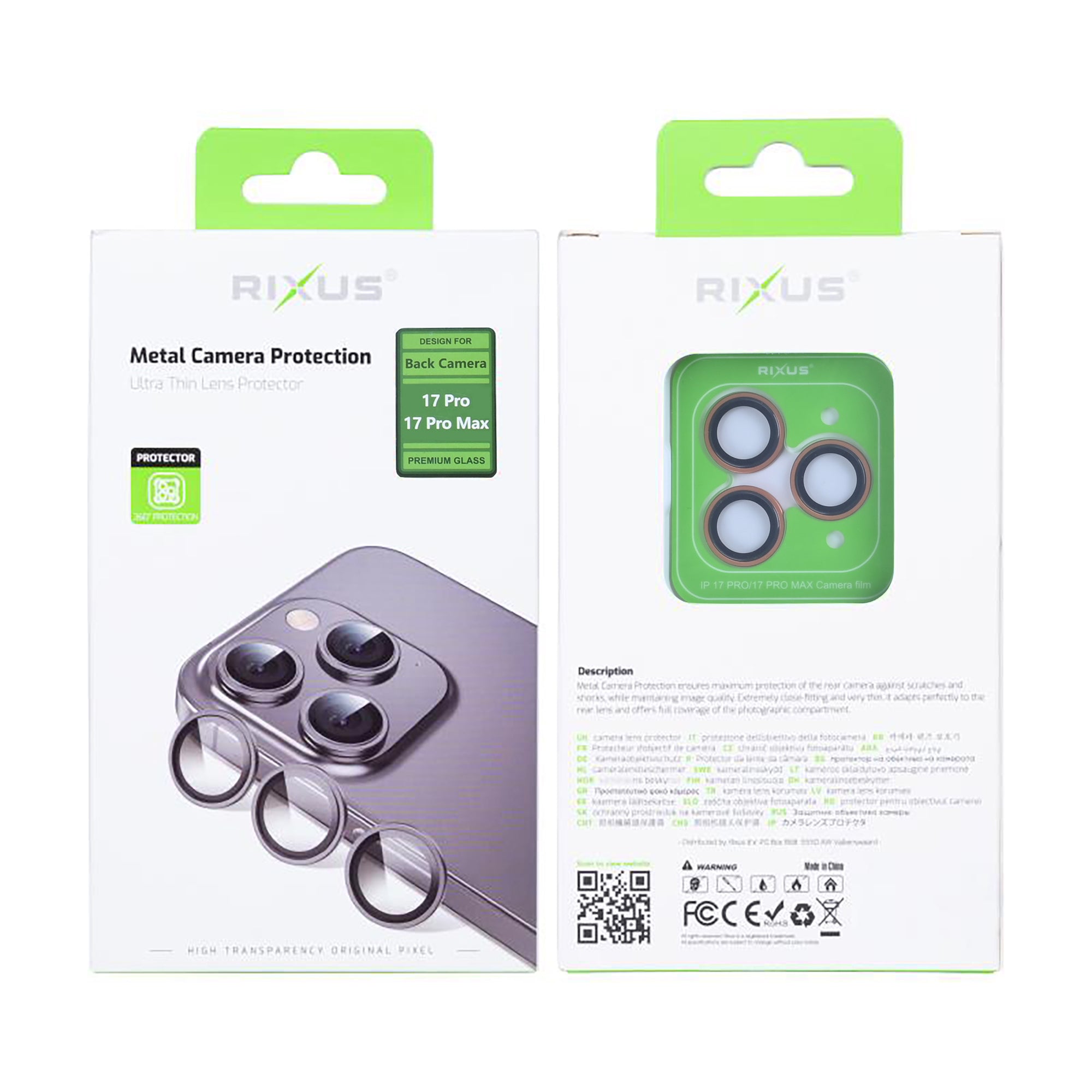 Rixus Metal Shield Camera Tempered Glass For Apple iPhone 17 Pro,17 Pro Max Orange