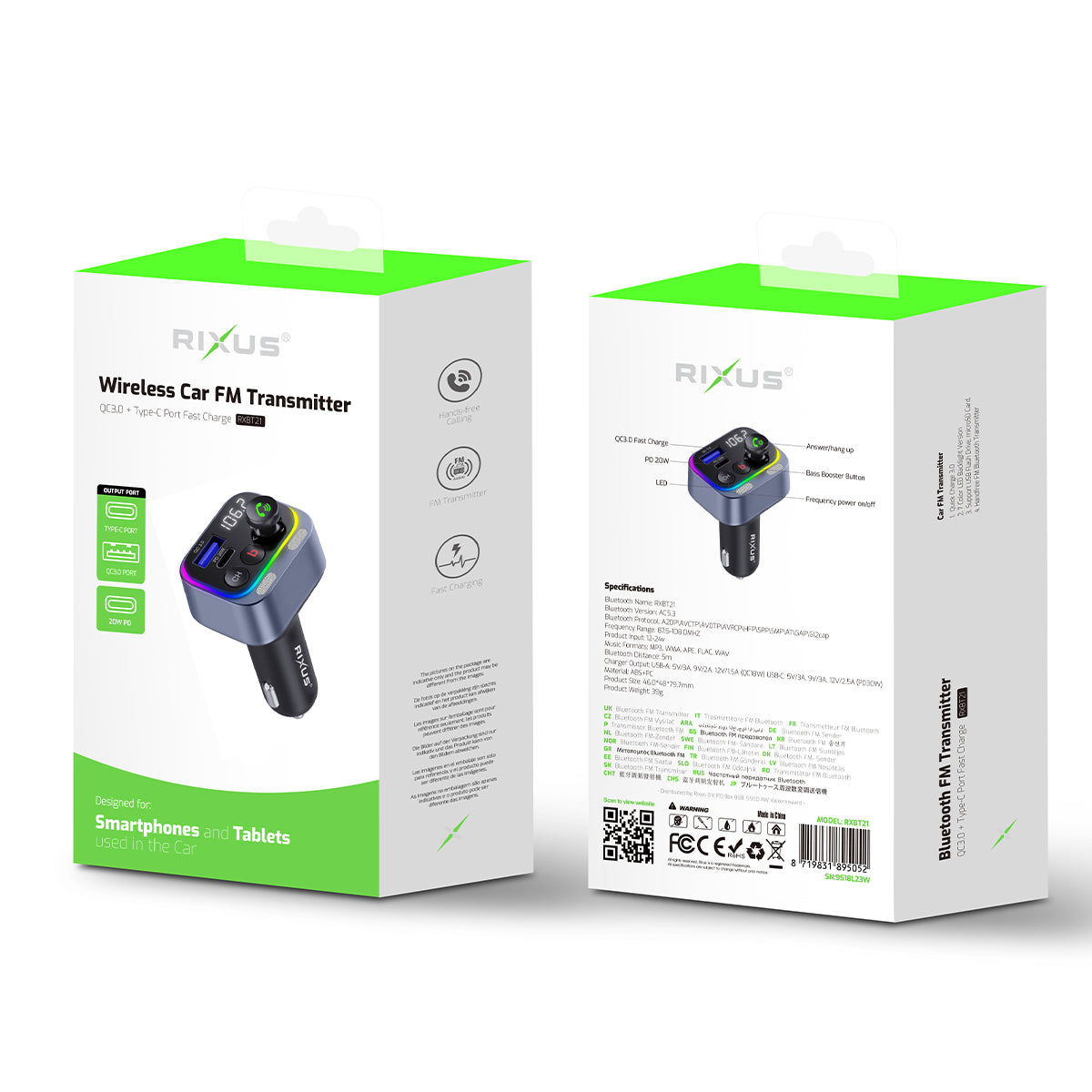Rixus RXBT21 Car FM Bluetooth Transmitter Black