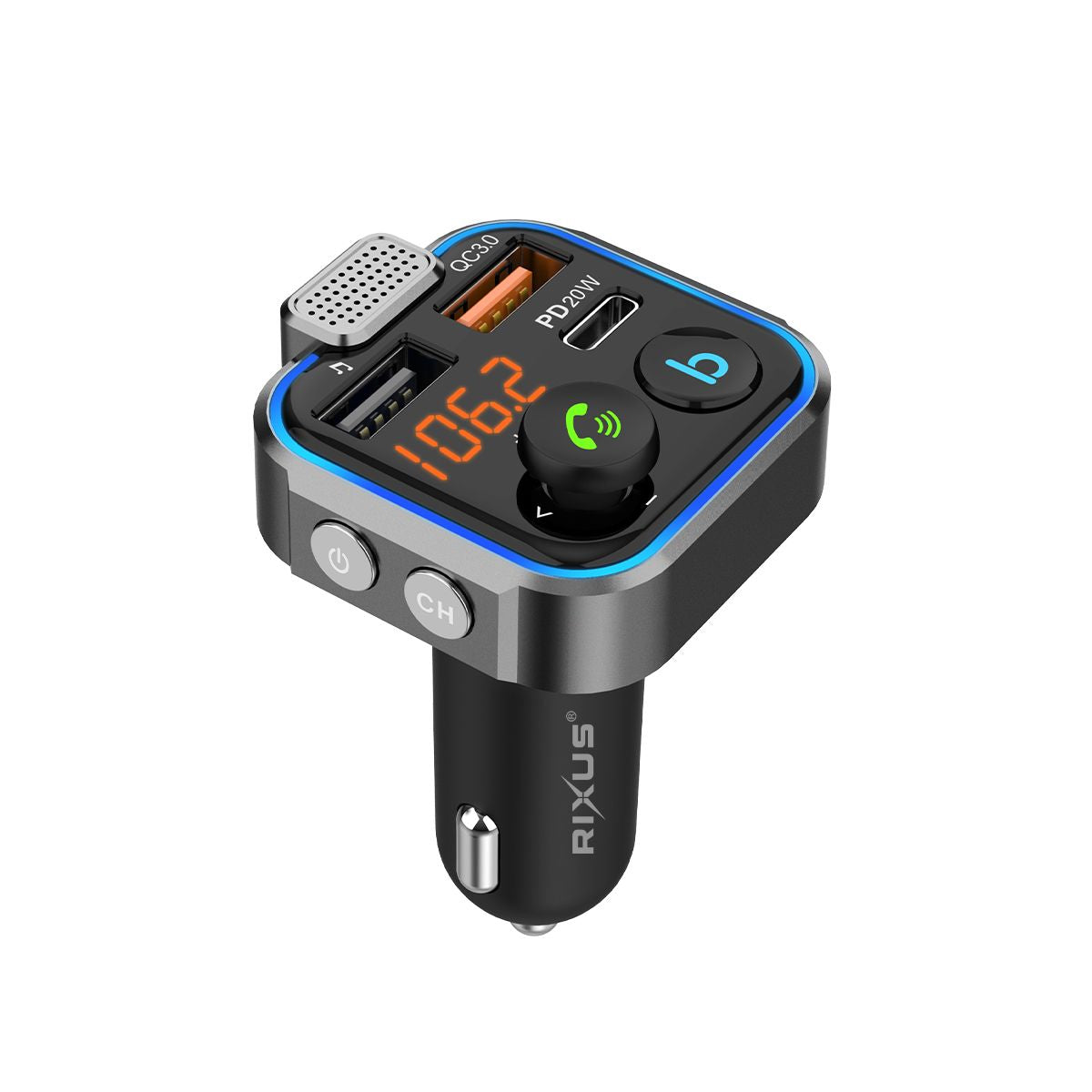 Rixus RXBT30 Car FM Bluetooth Transmitter Black