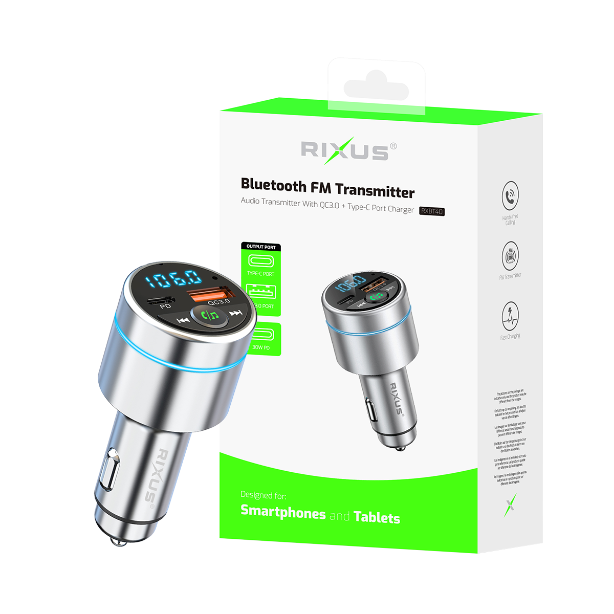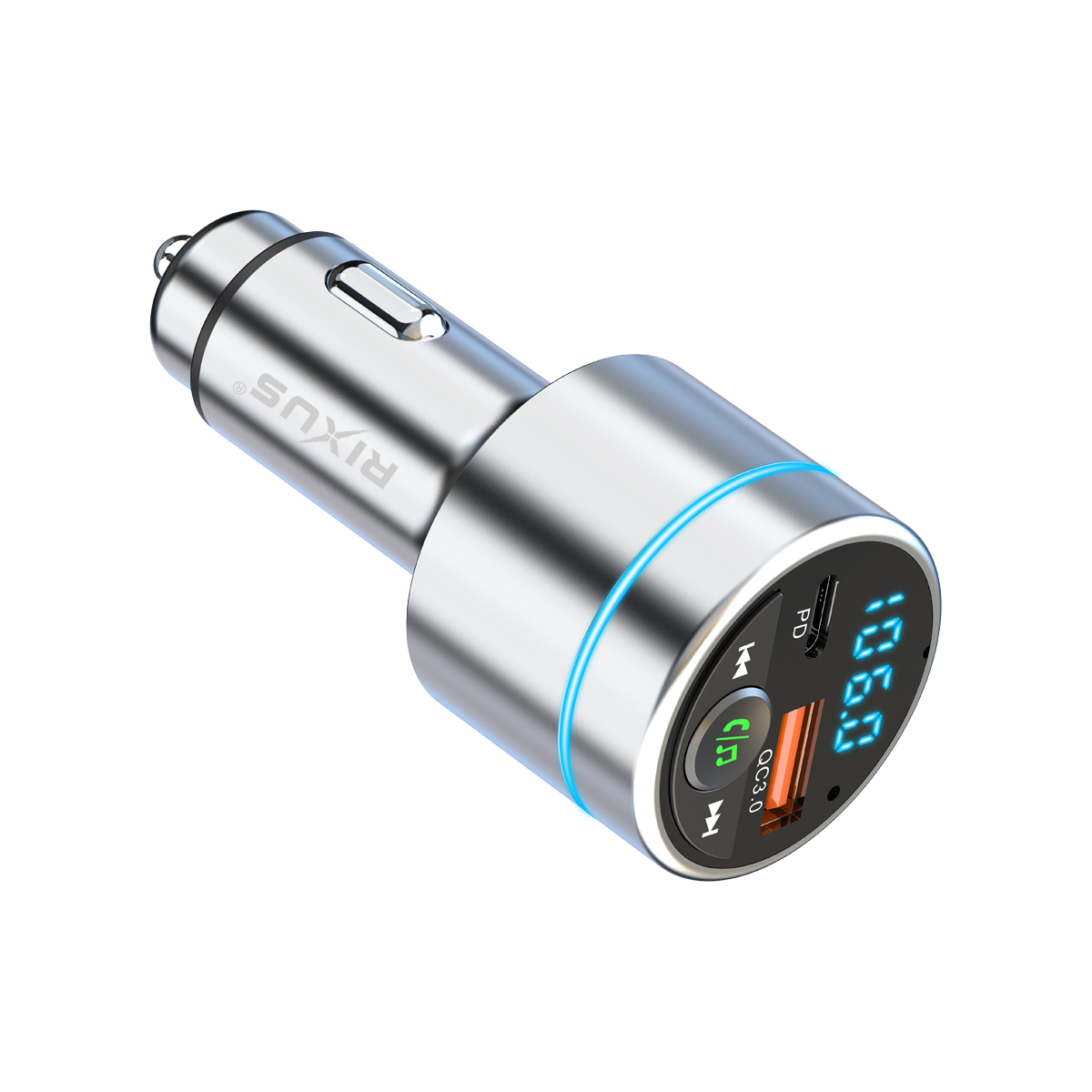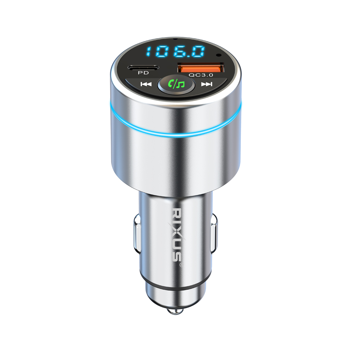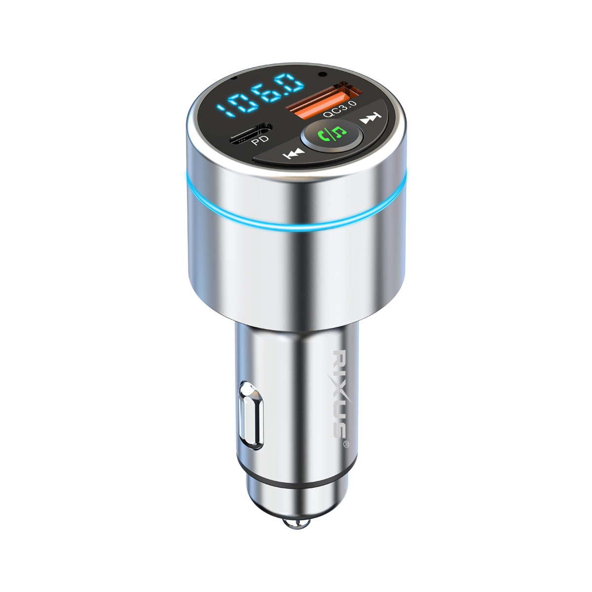 Rixus RXBT40 All-Metal Car FM Transmitter Bluetooth 5.3 Silver