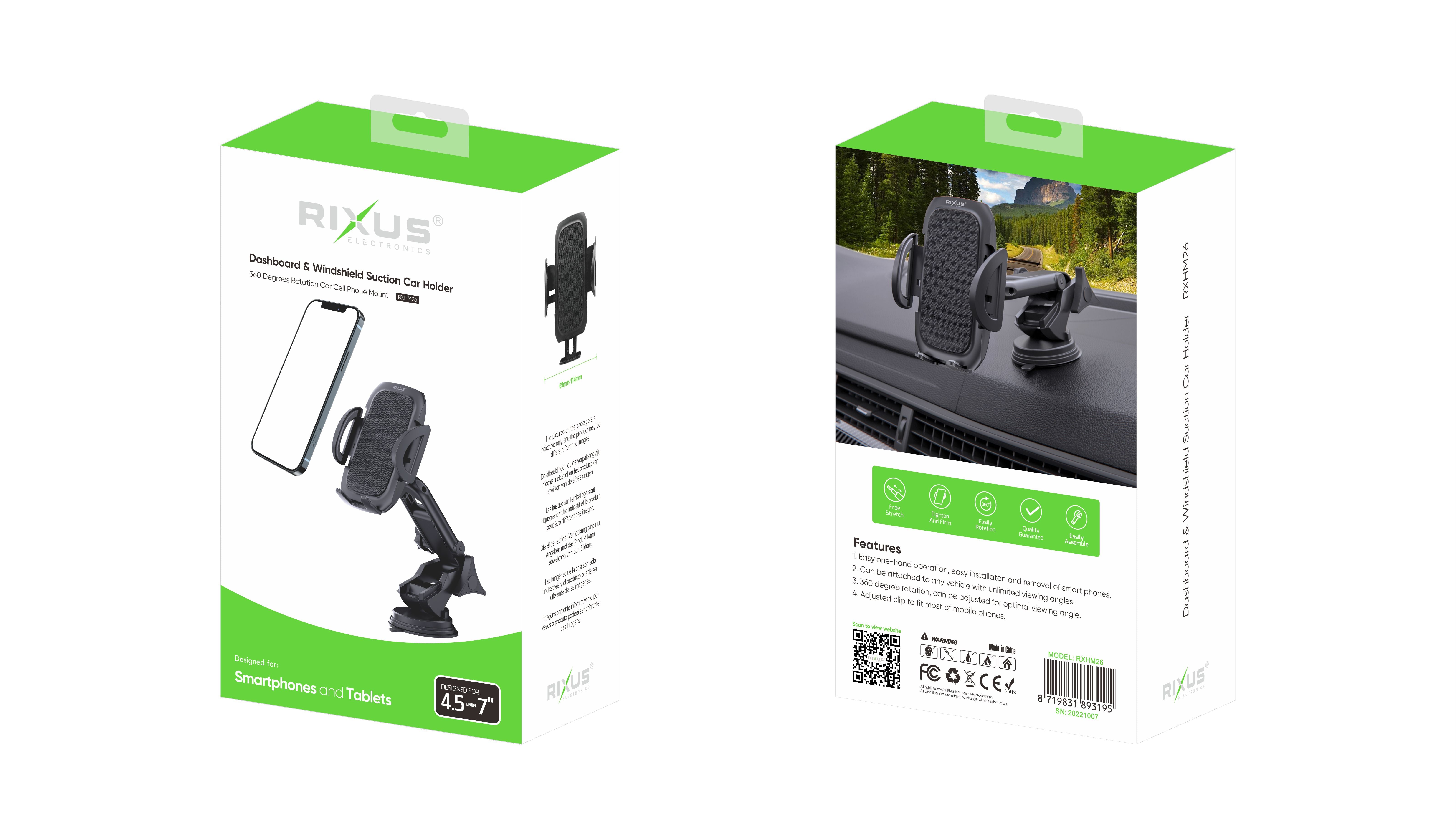 Rixus RXHM26 Dashboard And Windshield Car Holder 360 Degree