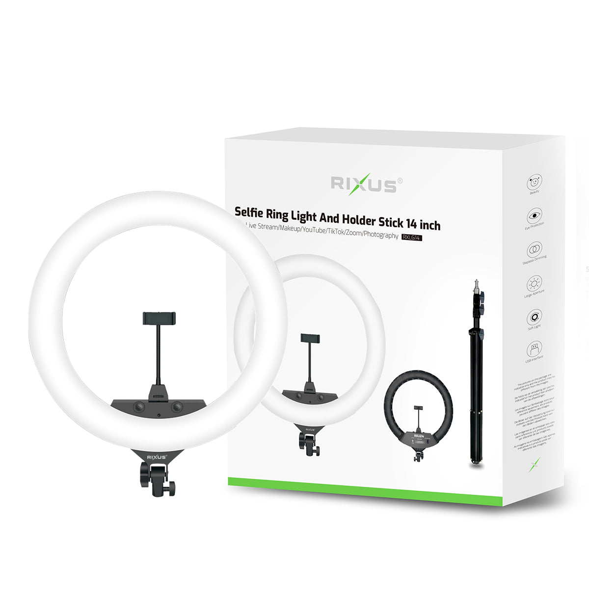 Rixus RXLG14 Selfie Ring Light And Holder Stick 14 inch