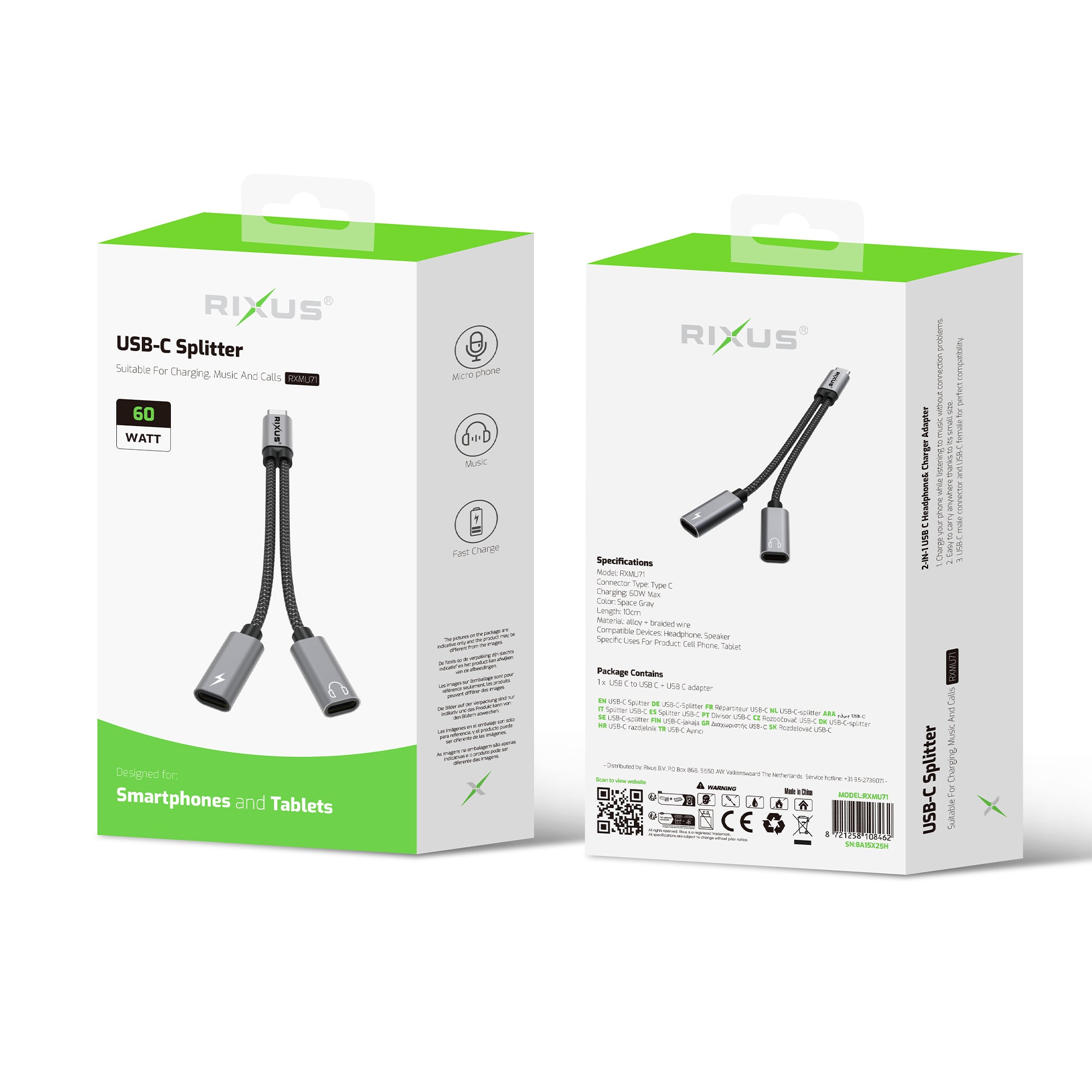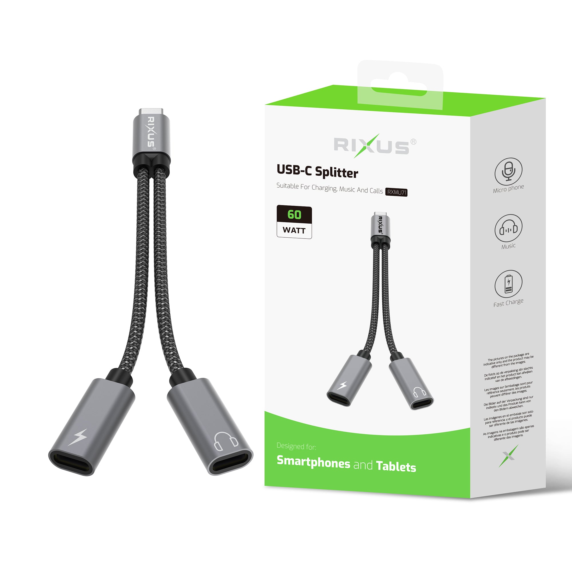 Rixus RXMU71 USB-C Splitter 15cm Space Gray