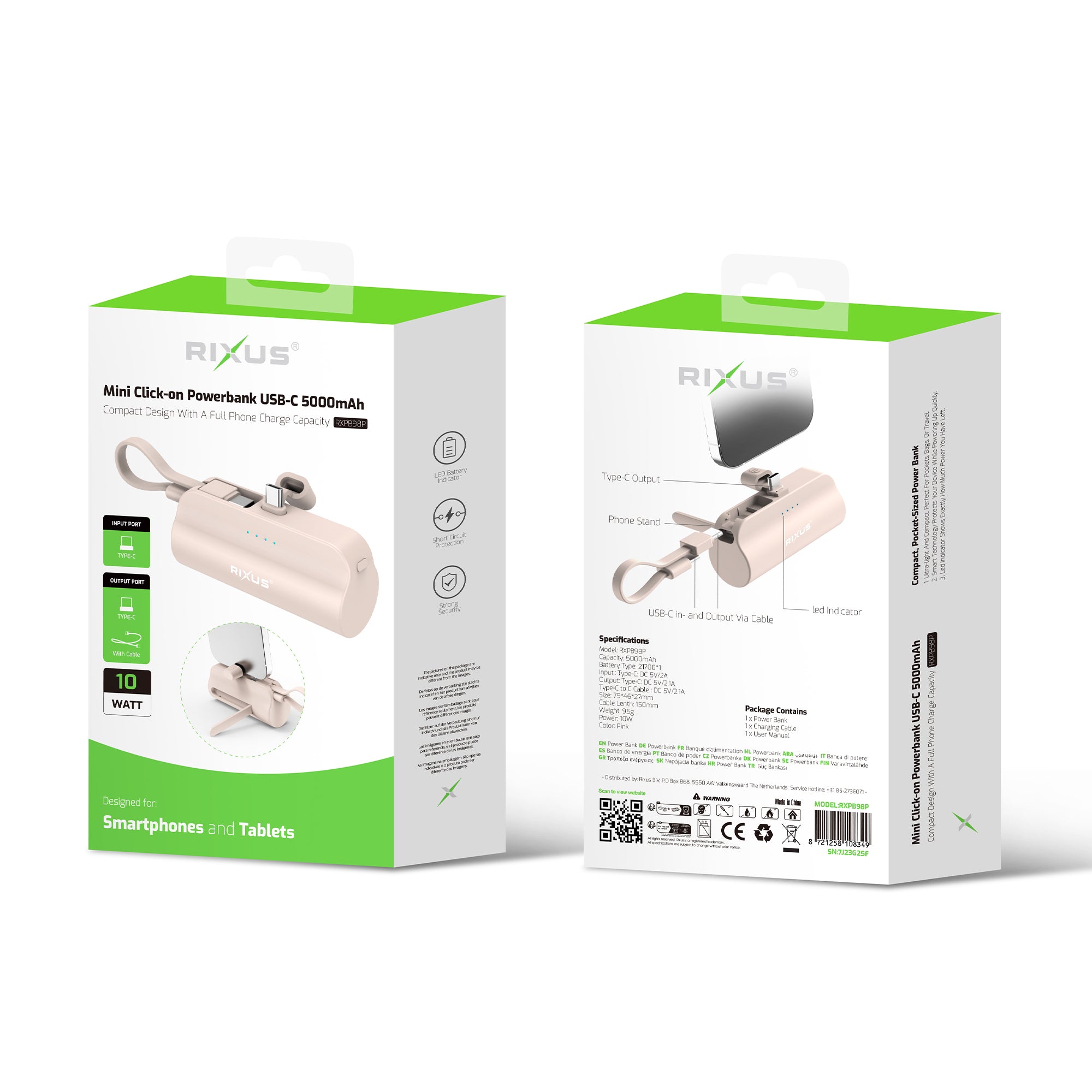 Rixus RXPB98P Mini Click-On Powerbank USB-C 5000mAh Pink