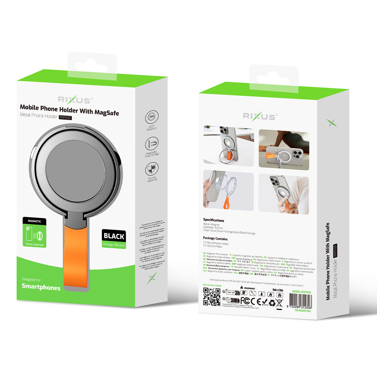 Rixus RXPH20BO Mobile Phone Holder With MagSafe Black + Orange