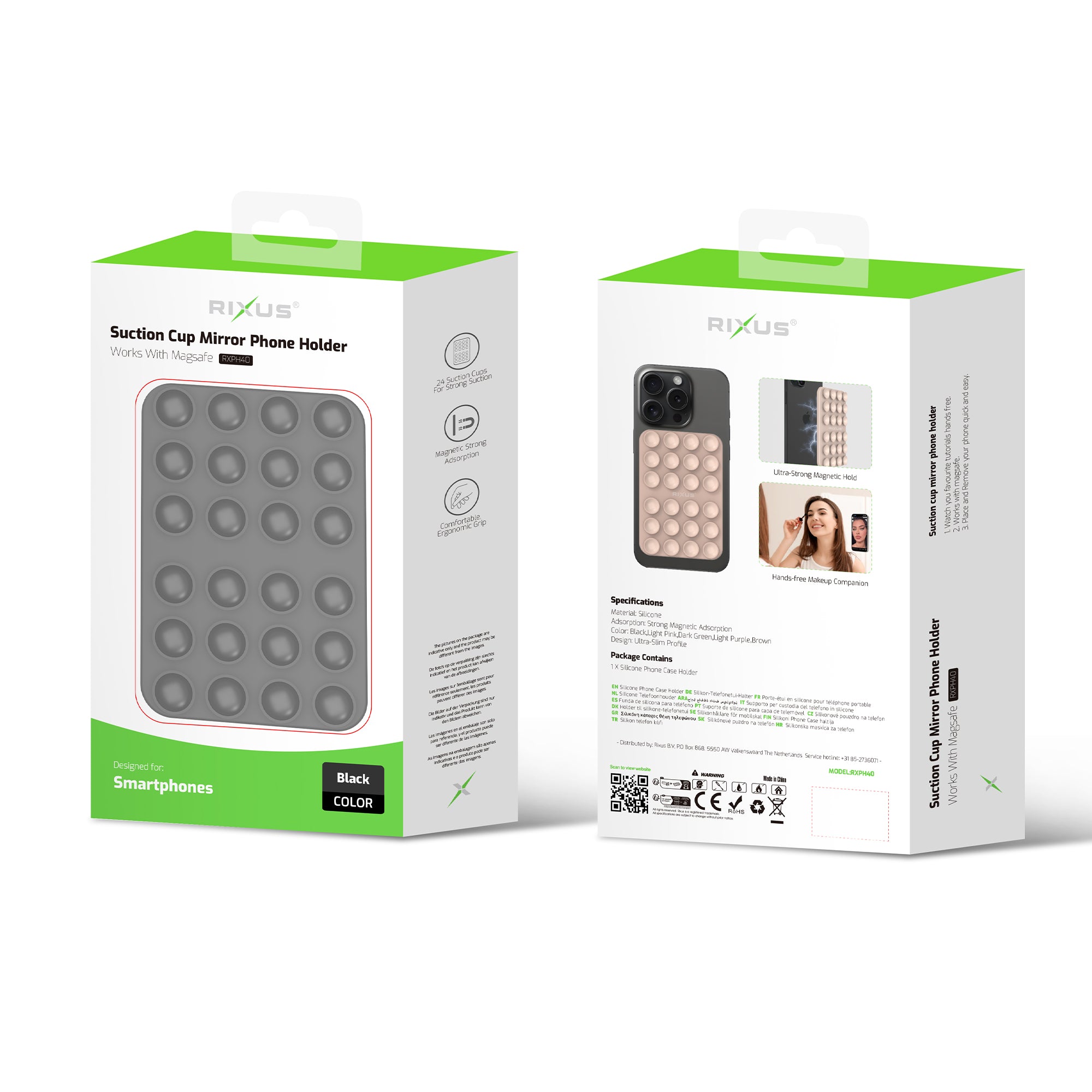 Rixus RXPH40B Suction Cup Mirror Phone Holder Black