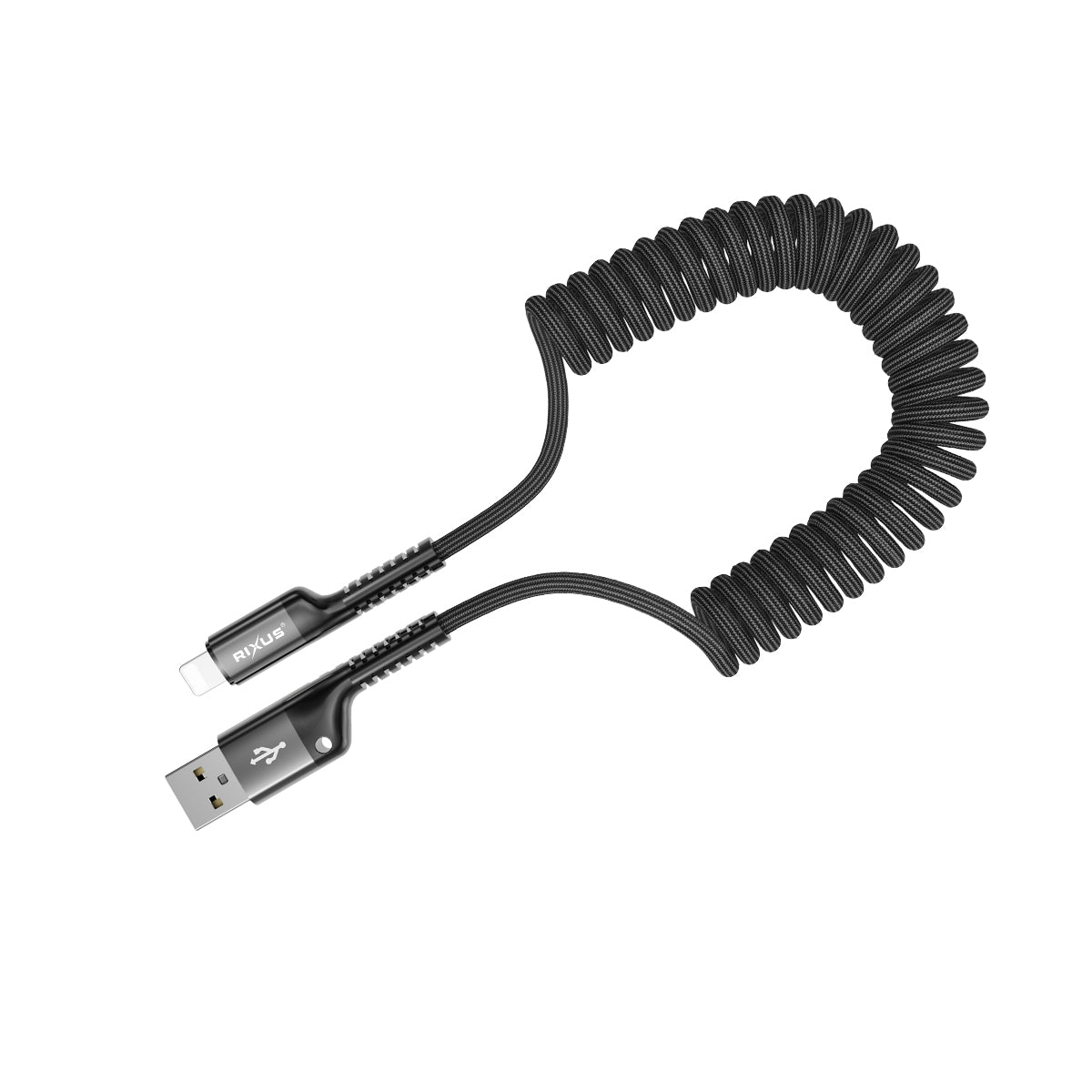 Rixus RXUC17AL car spring retractable braided Cable USB-A To Lightning