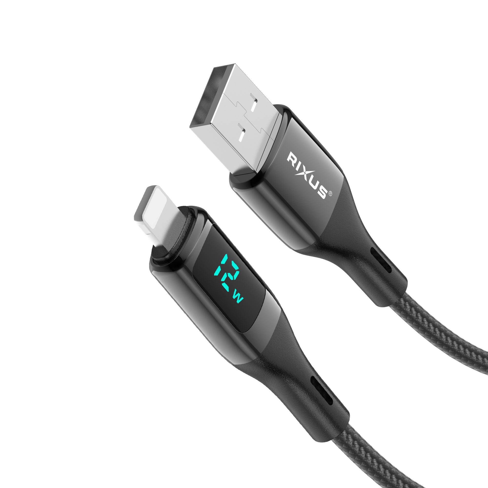Rixus RXUC28AL Braided USB To Lightning Cable With LED Display 100CM Black