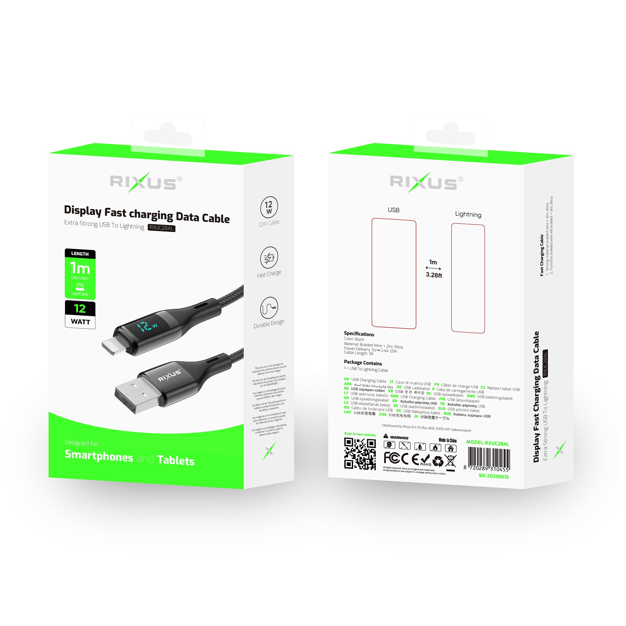 Rixus RXUC28AL Braided USB To Lightning Cable With LED Display 1m Black