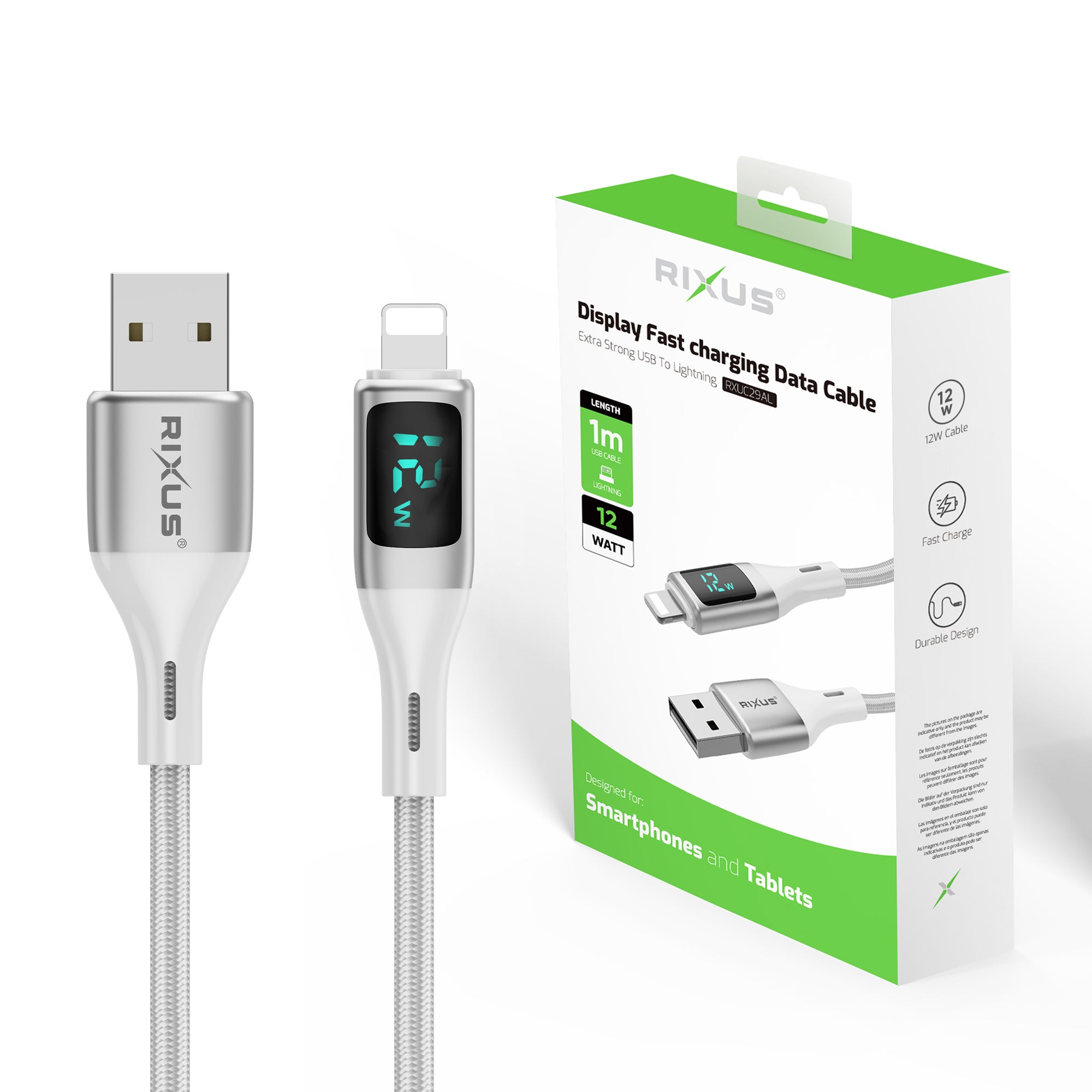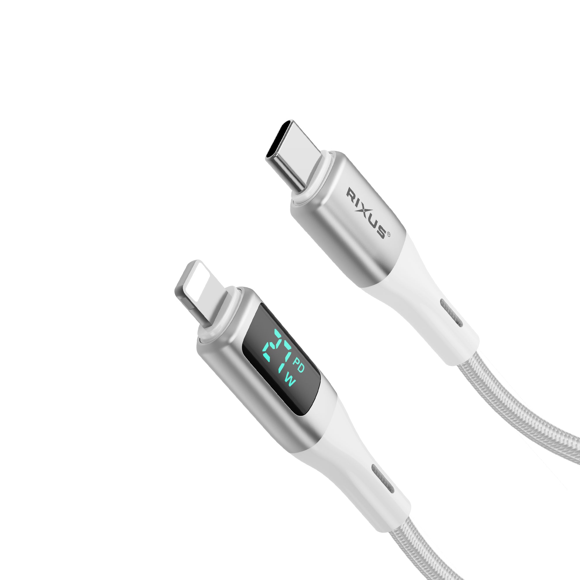 Rixus RXUC29AL Braided USB-A To Lightning Cable With LED Display 100CM White