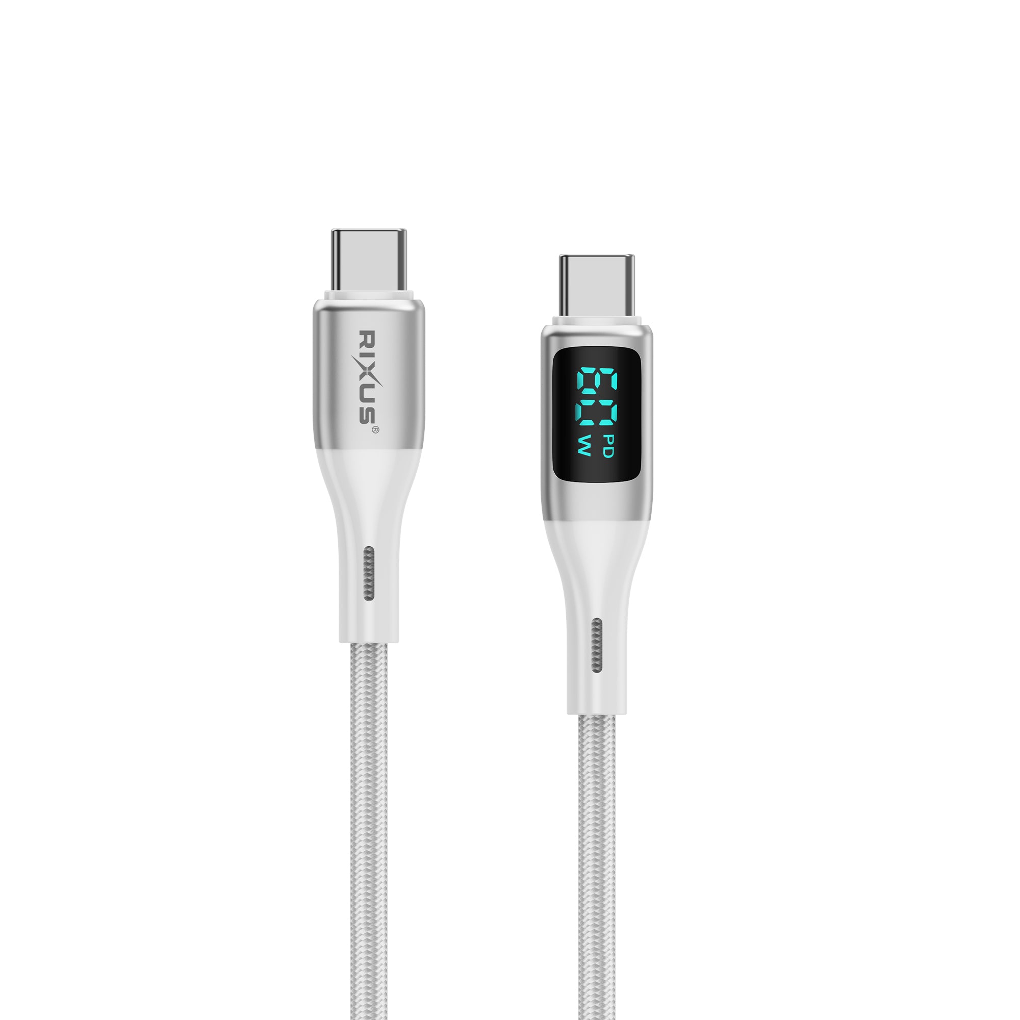 Rixus RXUC29C Braided USB-C To USB-C Cable With LED Display 100CM White