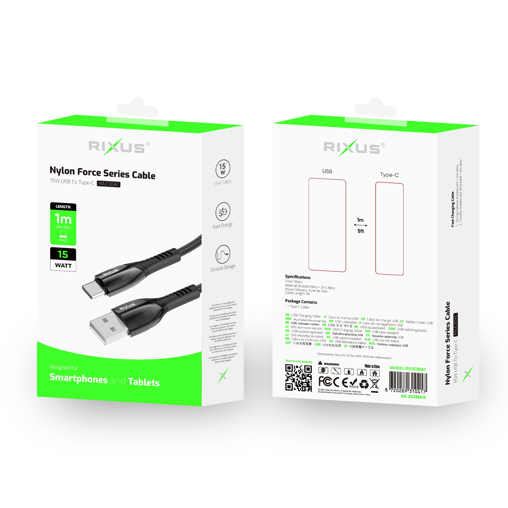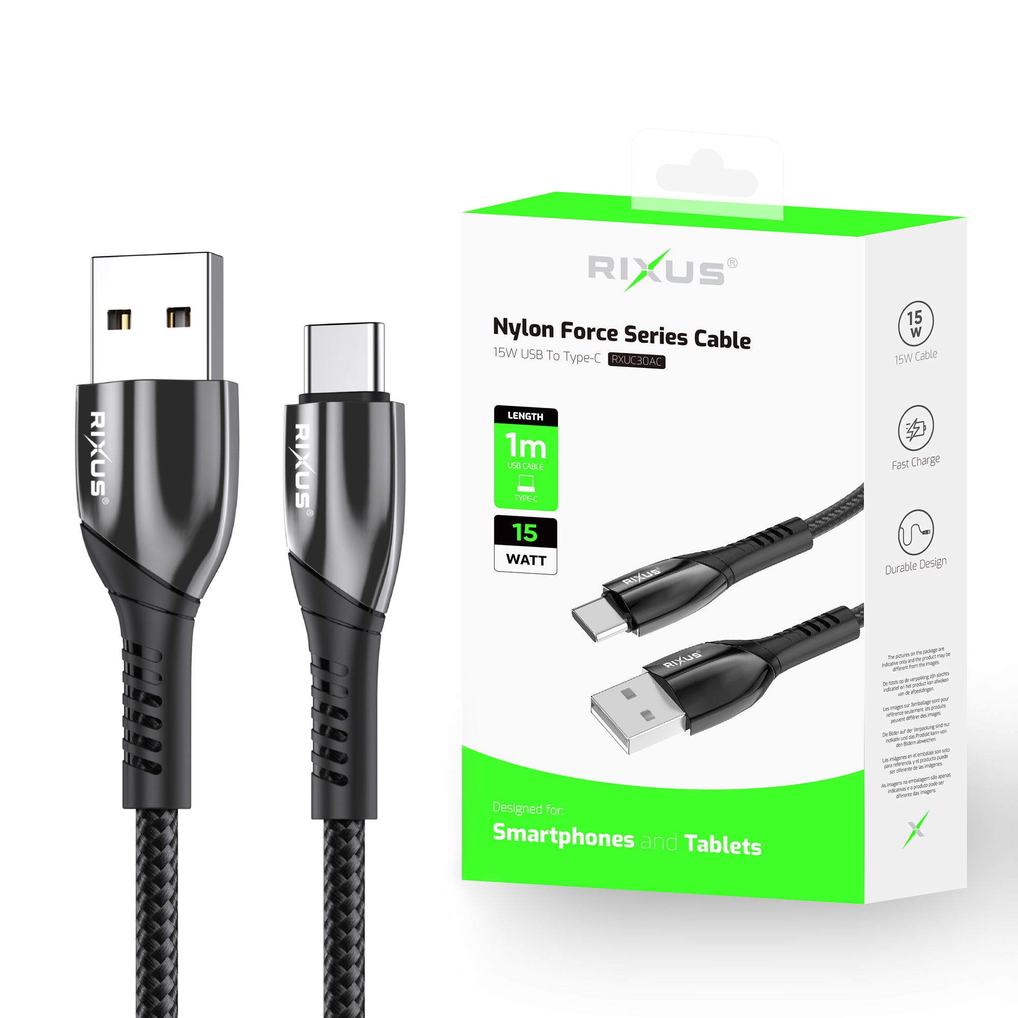 Rixus RXUC30AC Alloy USB To USB-C Data Cable 100CM Black