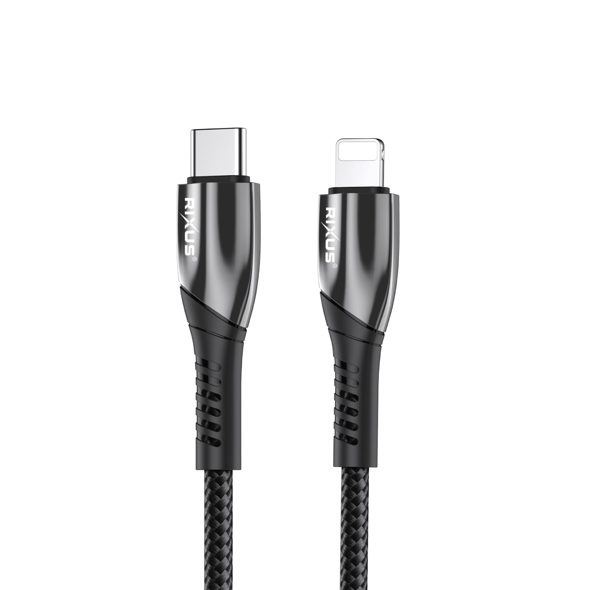 Rixus RXUC38L Fast Charging Cable USB-C To Lightning Nylon 200CM Black