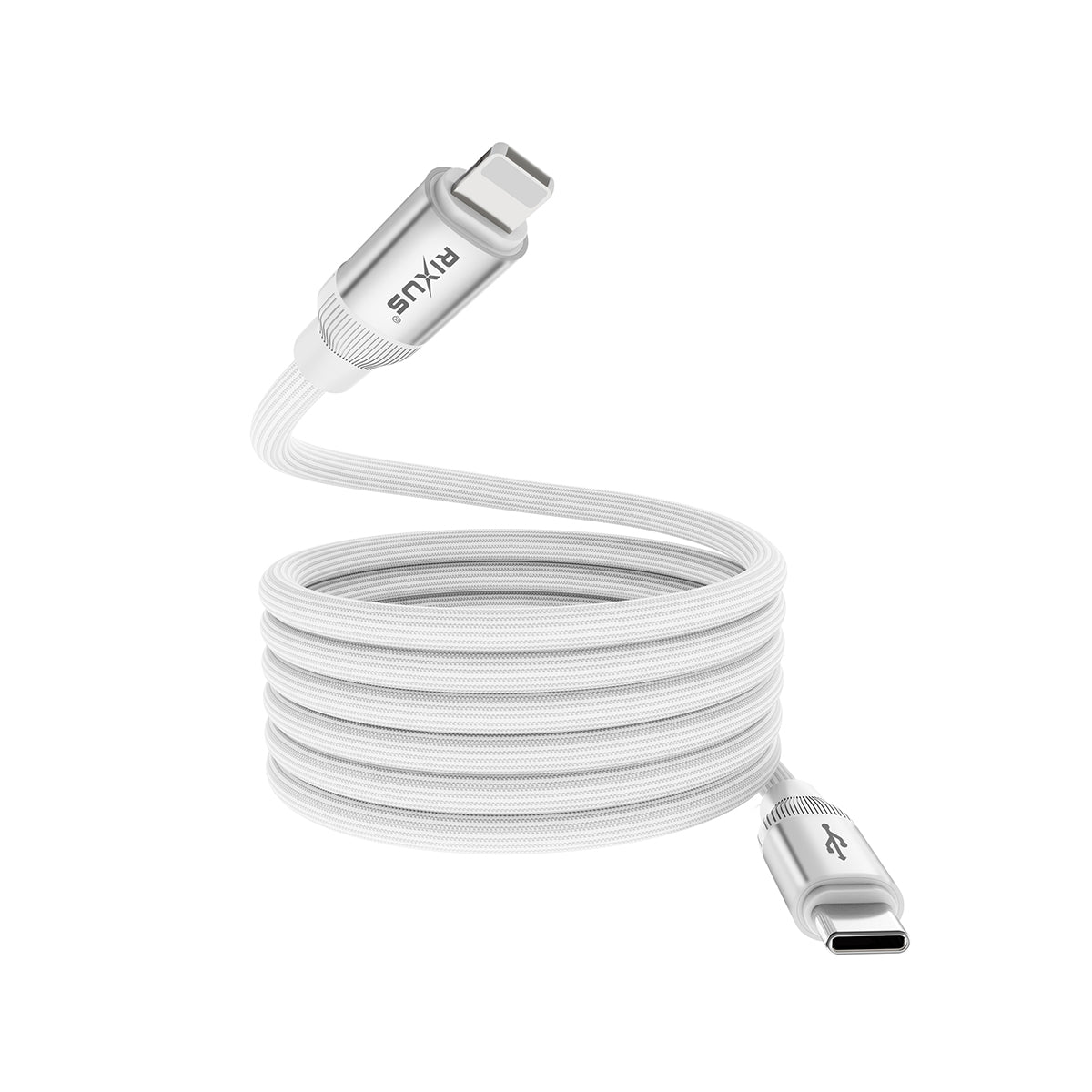 Rixus RXUC59L Magnetic Charging Cord USB-C To Lightning 100CM 30W White With Magnetic Suction. Aluminum + Nylon